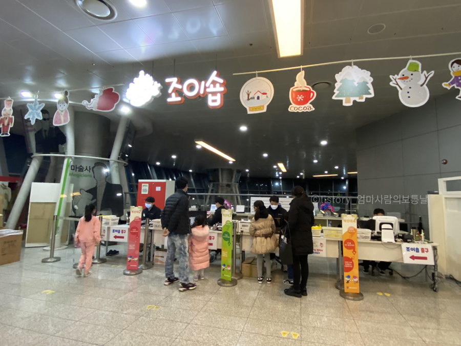 체험이 다 끝난 후에 남은 조이를 계산해서 원하는 상품을 살 수 있는 조이숍으로 갑니다. 조이숍은 체험관 내에 없고 출구로 쭉 나오다보면 한켠에 조이저축과 조이숍이 보입니다. 본인들이 체험하면서 쓰고 번 돈을 모아서 사용해볼 수 있는 경험도 값진 것 같네요 ^^ 저희집 아이들 너무 좋아했어서, 그 많은 체험중에 6가지뿐이 못해봤으니 다음에 시간내서 꼭 다시 오자고 했네요.
